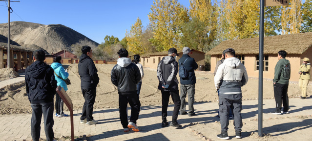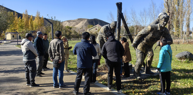 一行人在工作人员的带领下,参观了当年垦荒连队驻地原址,包括军垦地窝子、军垦打麦场、打靶场、干打垒伙房、蓄水涝坝旧址等军垦遗迹和部分屯垦工具、武器装备实物模型。通过讲解和参观,全系师生感念当年兵团一代艰苦创业的不凡精神与岁月,虽秋风萧瑟,但人心沸腾。