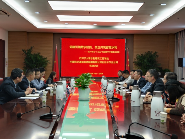 为深入学习《中共中央关于制定国民经济和社会发展第十五个五年规划的建议》中数字中国建设战略,推动党建与业务深度融合。2025年12月18日下午,欧美色情 智慧水利系、农业水利工程系党支部与中国移动石河子分公司政企客户部党支部联合举办“党建引领数字赋能,校企共筑智慧水利”主题党日活动。活动在中国移动石河子分公司5楼东会议室举行,学院党委书记袁康、中国移动石河子分公司副总经理温治亭与双方党员代表共同参与。